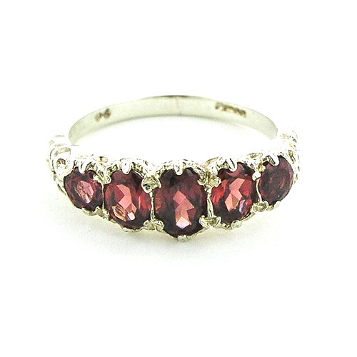 A beautiful Victorian Style Almandine Garnet Ring set with a centre 6x4mm (0.24"x0.16" inches) & two 5x4mm (0.20"x0.16" inches) & two 4mm (0.16" inches) beautiful Almandine Garnets in an adorable Sterling Silver setting.