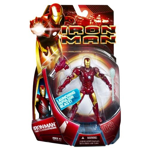 Iron Man Movie Wave 01: Iron Man Mark III appears to boast an array of articulation similar to that of a Marvel Legends figure and is equipped with a missile launcher. The red and gold Mark III armor is much sleeker than the Mark I armor, the latter of which was a rough draft with a life-saving pacemaker that enabled Tony Stark to persevere against grave injury and capture in Afghanistan. The armor provides Tony Stark with vastly augmented strength, near-invulnerability, and an arsenal of advanced weaponry including missiles and repulsor blasts; with this version of Iron Man, the repulsor blast function is apparently externalized in the form of arm-mounted projectile-firing cannon. It?s fully pose-able and articulated six inch scale action figure with accessories. Compatible in size with previous Marvel Legends releases.