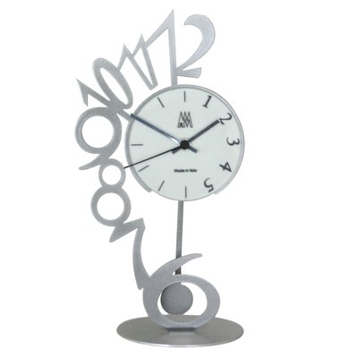 The unique and stylish Italian designer clock maker Arti & Mestieri has created the Perche pendulum mantel clock which features a frosted mirror dial with silver numbers down one side, and is surrounded by larger silver stencilled numbers round the other side. The number six, due to the hole in it's shape, cleverly allows you to see the pendulum as it swings back and forth below the dial. Ideal if you love the style of the Arti clocks, but would prefer something more subtle. Designed And Made By Arti & Mestieri in Italy. Requires 1 x AA battery. German Quartz Clock Movement.