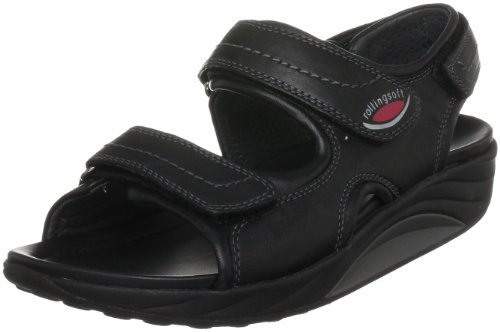Classic Trekking sandal. Incorporating Gabor's Rolling Soft Technology. Leather uppers with three velcro adjust straps. Leather linings and footbeds. Contoured Rolling Soft sole unit.